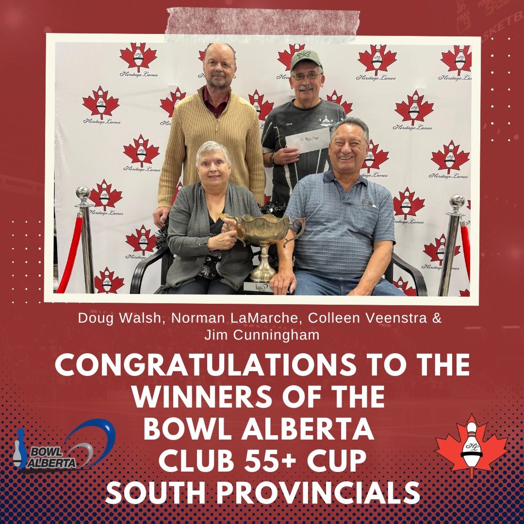 Big shout-out to our hometown heroes! Congratulations to Doug, Norman, Colleen, and Jim — the Bowl Alberta Club 55 Provincial Champions! You represented Heritage Lanes with skill, class, and plenty of strikes! Way to bring home the title — we couldn’t be prouder!
