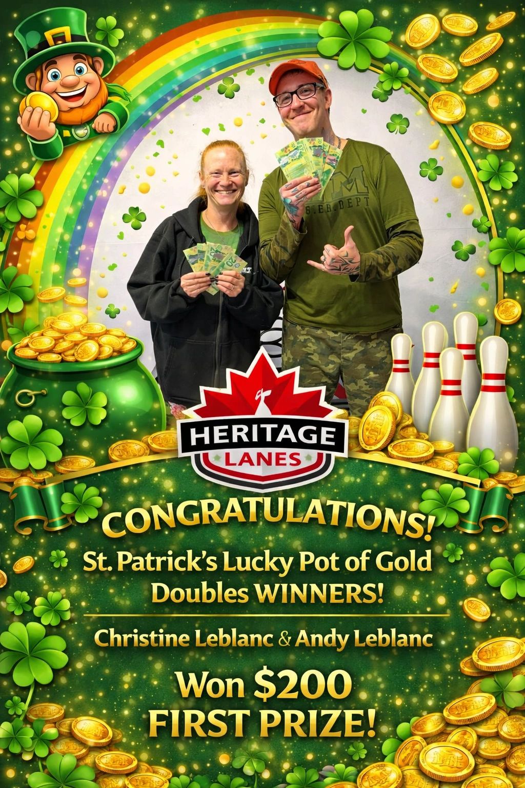 Move over leprechauns… we’ve found the real pot of gold winners! A huge congratulations to Christine & Andy Leblanc, who struck it rich this St. Patrick’s Day and claimed our Lucky Pot of Gold! Whether it was skill, luck, or a little Irish magic in their approach… the pins were flyin!